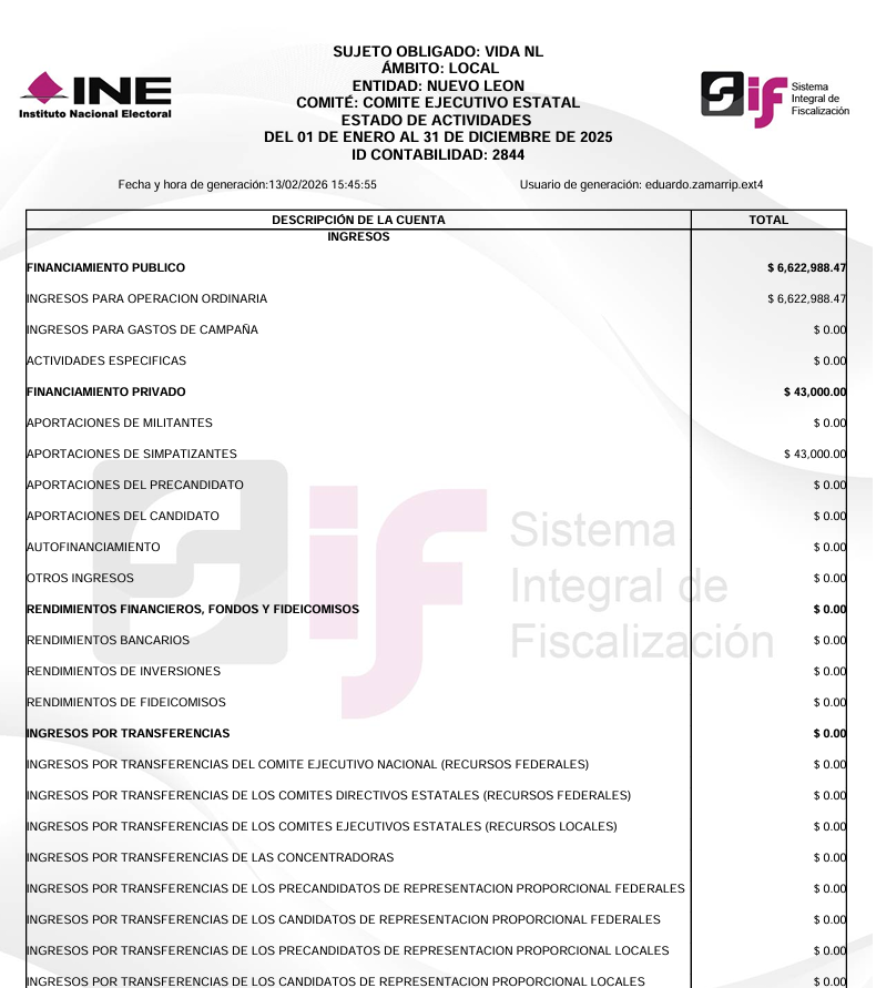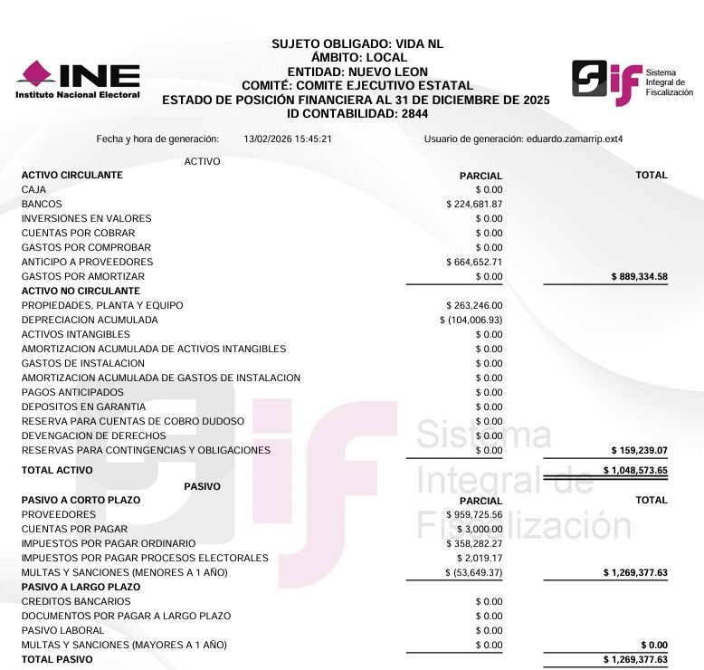 Financiamiento Público para Actividades Ordinarias Permanentes y Gastos de Campaña 2024 - VIDA NL