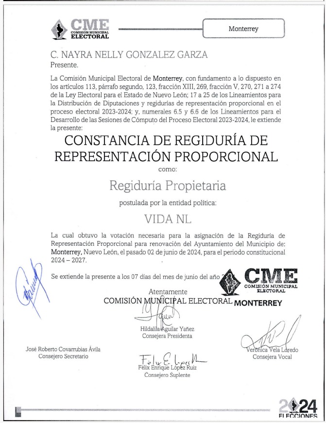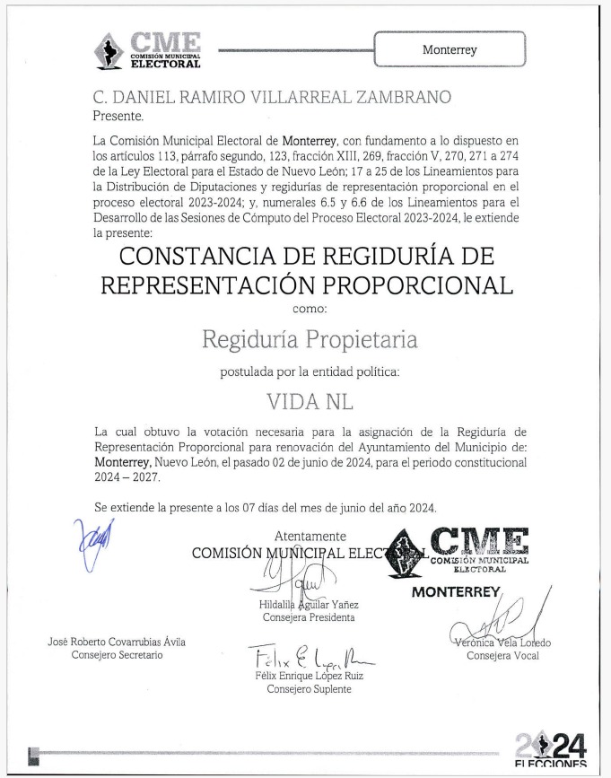 Archivos adjuntos LOS RAMONES Regidurías RP VIDA NL 2024-2027 GARCÍA Regidurías RP VIDA NL 2024-2027 GRAL. ZUAZUA Regidurías RP VIDA NL 2024-2027 MONTERREY Regidurías RP VIDA NL 2024-2027 REGIDORES DE VIDA NL 2024-2027